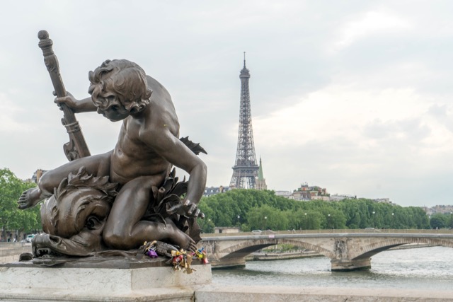 On our first afternoon, we walked along the Seine – a good way to get oriented – and crossed the Pont Alexandre III, an ornate Beaux Arts bridge lined with gilded sculptures that affords some scenic views.