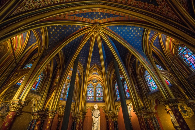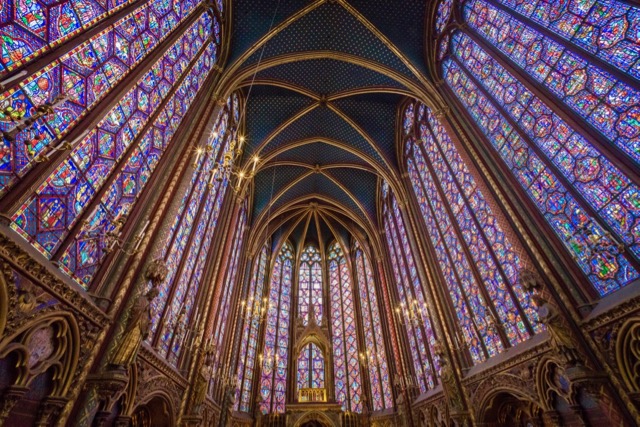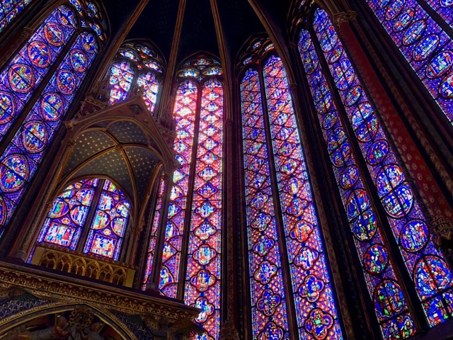 After a short walk across the Île de la Cité, you reach the royal chapel, Sainte Chapelle. It’s known for magnificent stained glass that dates – incredibly – to the thirteenth century.