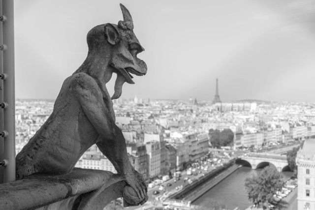 Of course, it’s a must to get that iconic photo of the chimera overlooking the Eiffel Tower. Since my last visit, fine wire fencing has been added that makes a clear shot challenging.