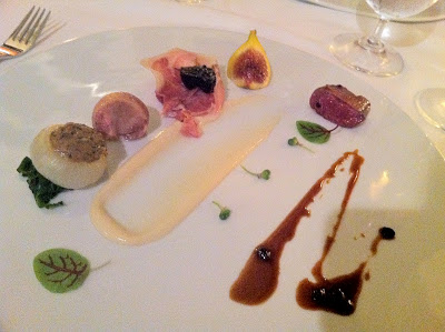 Course 11: squab three ways, with figs and cured ham. This was another nicely composed dish, with dainty bites of squab breast, leg, and squab liver-stuffed onion. The green fig and dried black fig added sweetness.