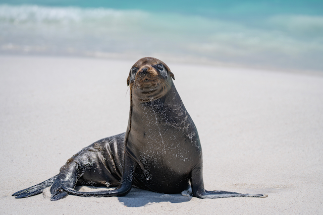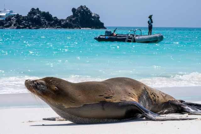 We skipped the early morning kayaking option and started our day exploring Gardner Bay beach, which was absolutely teeming with sea lions. They completely ignored our paparazzi imitations – except for one baby sea lion who made a very adorable attempt at intimidating me. Afterwards we set off for zodiac rides to see the scenery and sea birds.